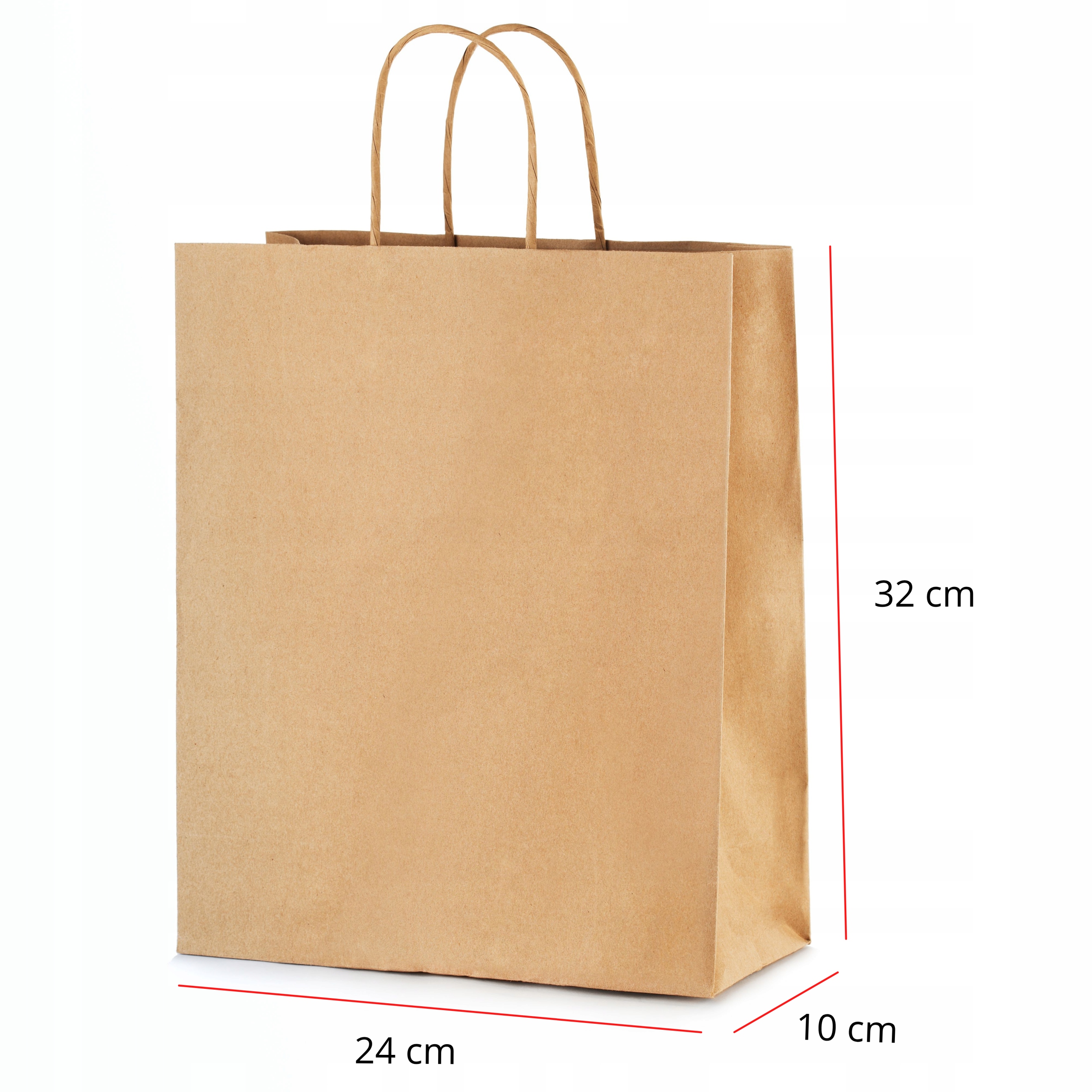 Wykonane z wysokiej jakości, grubego papieru 100g/m2 papieru kraftowego, bardzo wytrzymałe papierowe z uchem wykonanym ze skręconego papieru.