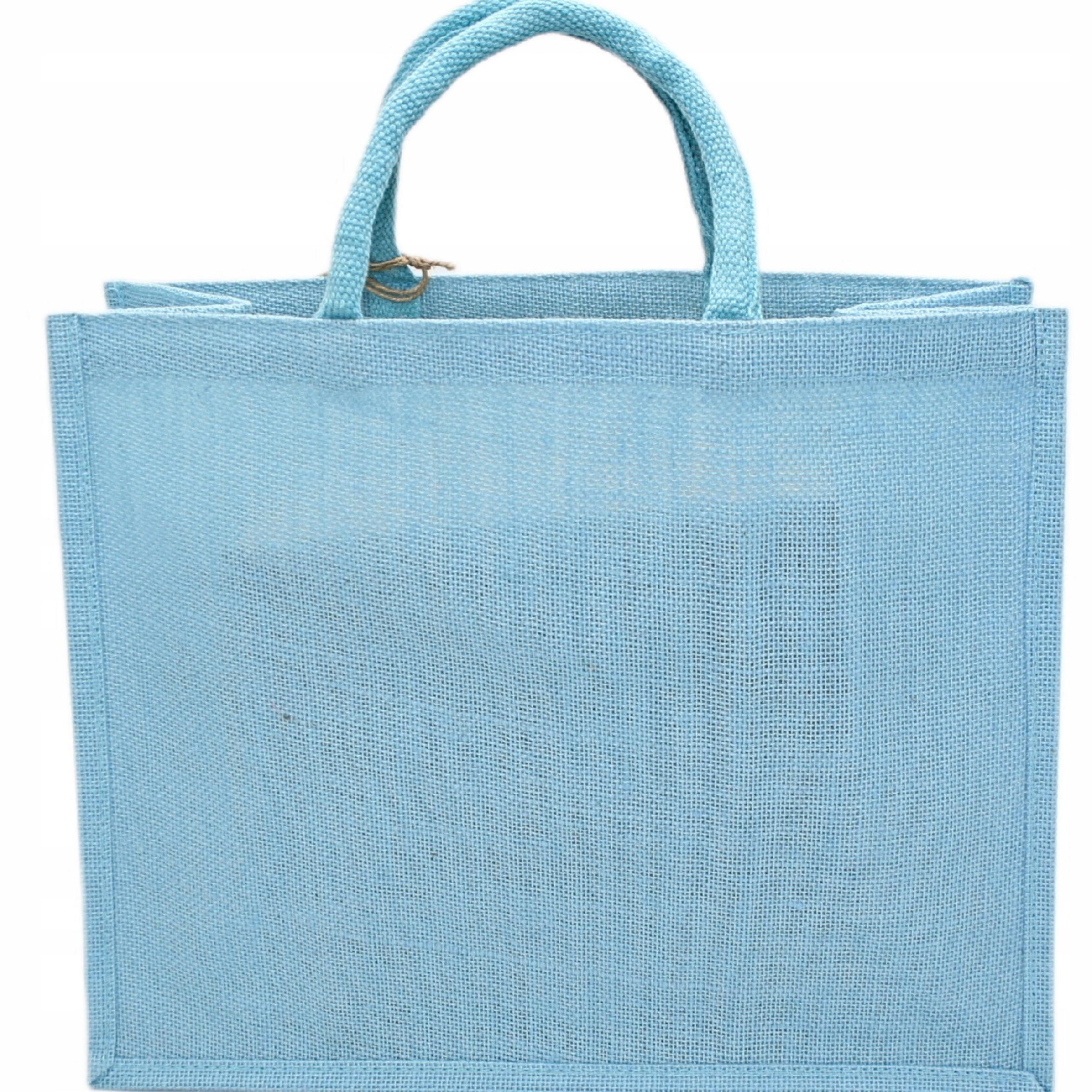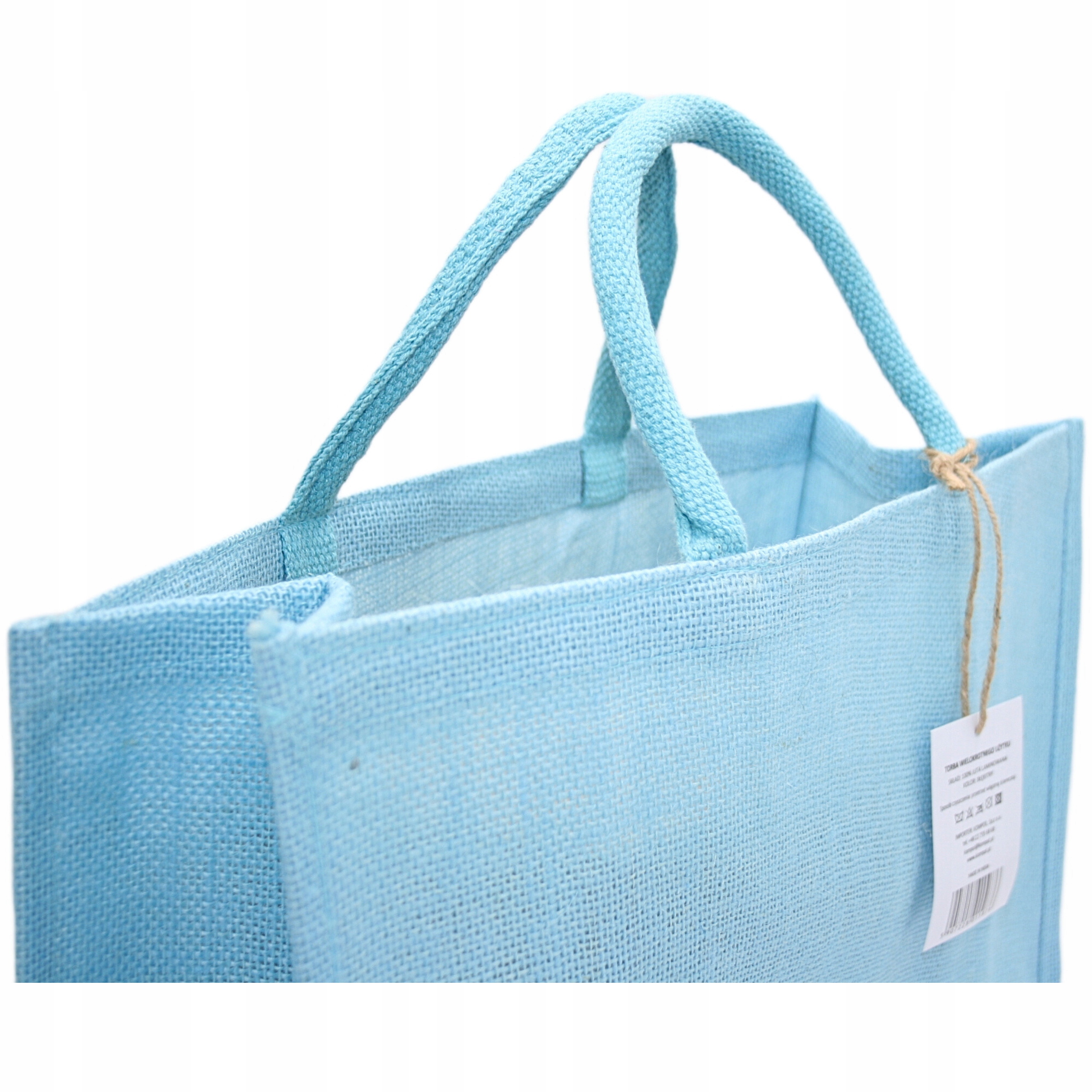 Torba torebka jutowa na zakupy EKO błękitna duża 40,5x18x32,5 cm